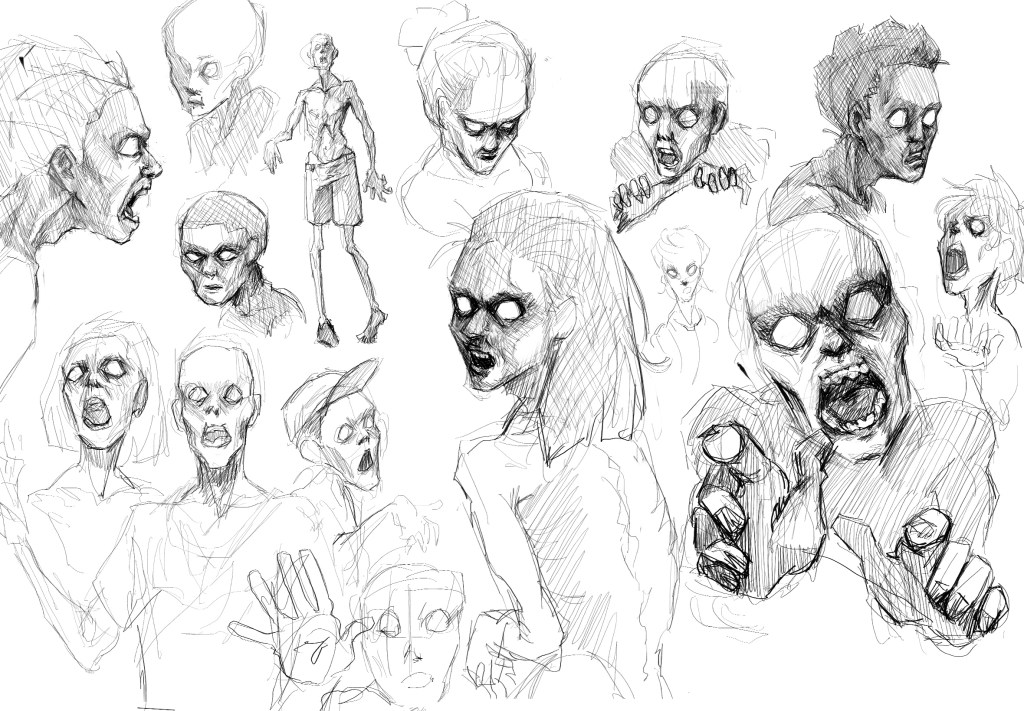 Initial character designs – Red, Wolf, Straw Pig, Wood Pig, Brick Pig