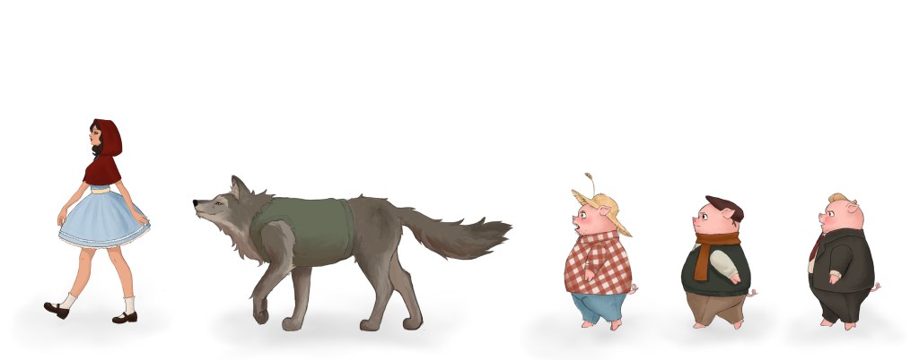 Character designs – Red Riding Hood (Red, The Wolf, Grandma)